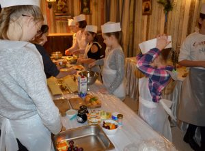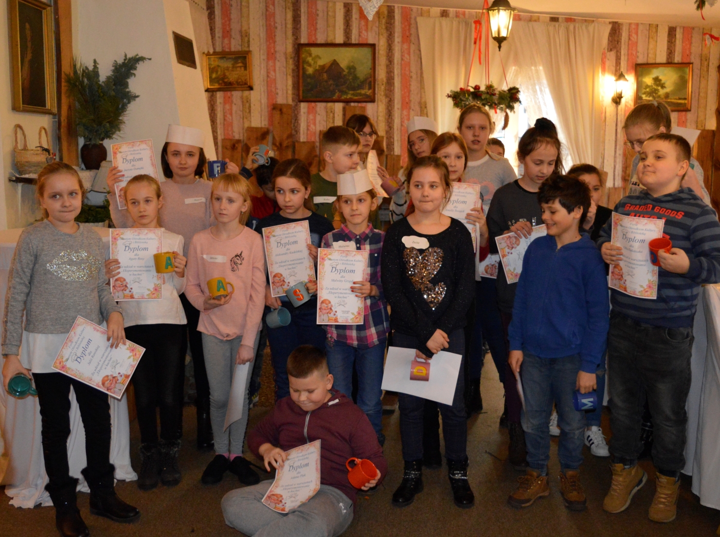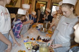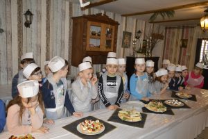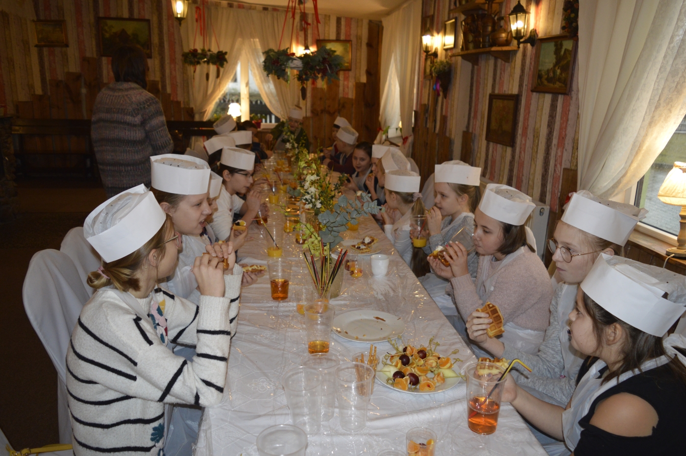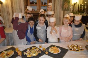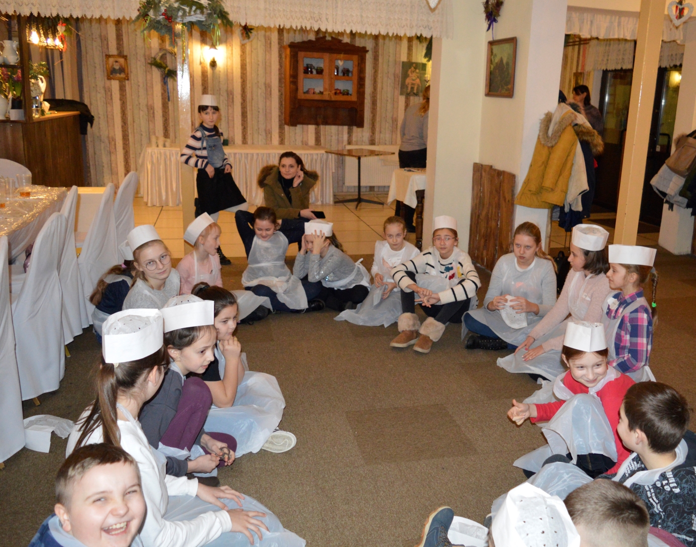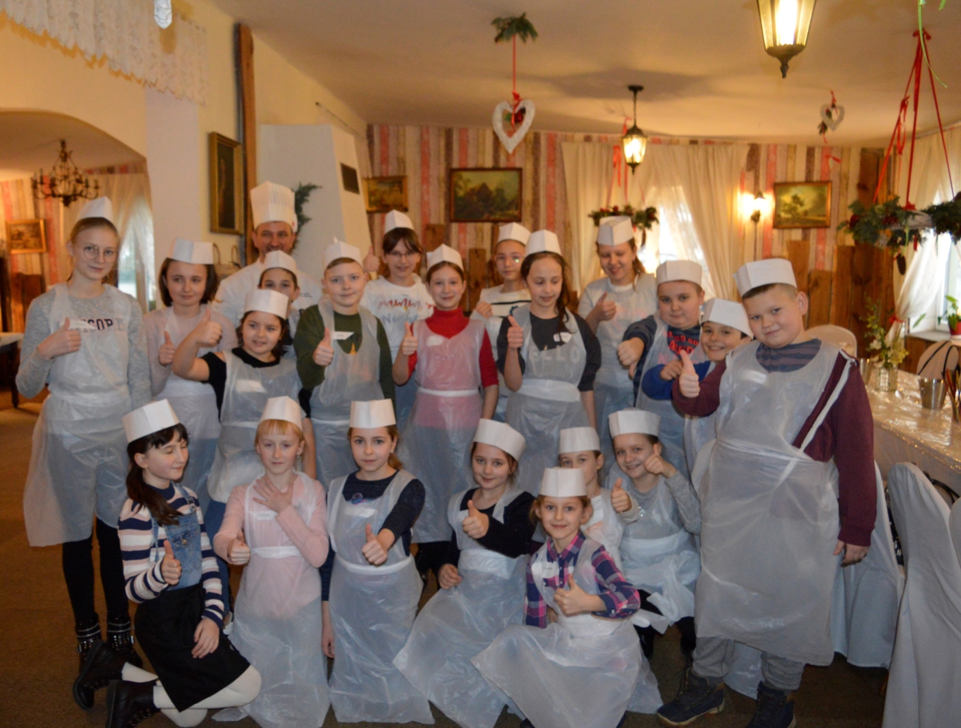 Tegoroczne ferie rozpoczęliśmy od smakowitych zajęć w tajemniczej kuchni… wraz z prawdziwym czarodziejem smaków – Panem Marcinem – przygotowaliśmy przepyszne gofry, babeczki, pasty kanapkowe, a nawet tort! Kolejnego dnia wybraliśmy się na wycieczkę do kina, obejrzeliśmy film pt. „Królewna śnieżka i fantastyczna siódemka”, który opowiadał o tym, że wygląd to nie wszystko, a naprawdę pięknym jest ten, kto jest dobry… środę natomiast spędziliśmy w muzeum im. Konstantego Laszczki w Dobrem, gdzie mogliśmy się poczuć jak prawdziwi artyści! Następnie ponownie zawitaliśmy w kinie, obejrzeliśmy film „Gang zwierzaków”, który wprawił wszystkich w doskonały nastrój. Ostatni dzień ferii także był pełen wrażeń: stworzyliśmy wyjątkowe koszulki, zjedliśmy pyszne tosty, a nawet zdążyliśmy zorganizować krótki seans filmowy. Każdego dnia w zajęciach organizowanych przez Gminny Ośrodek Kultury w Dobrem brało udział około czterdziestu uczestników. Z niektórymi widzieliśmy się codziennie, inni brali udział w wybranych zajęciach lub wyjazdach, najważniejsze jednak, że dla każdego znalazło się coś dobrego. Do zobaczenia niebawem!
