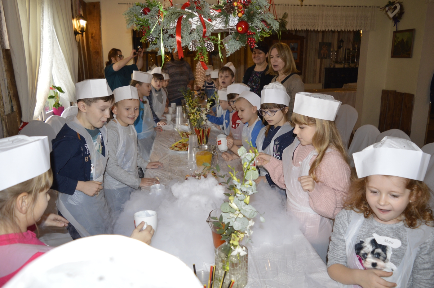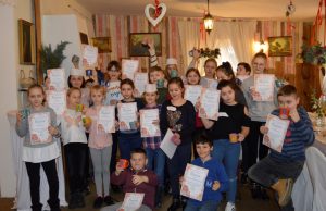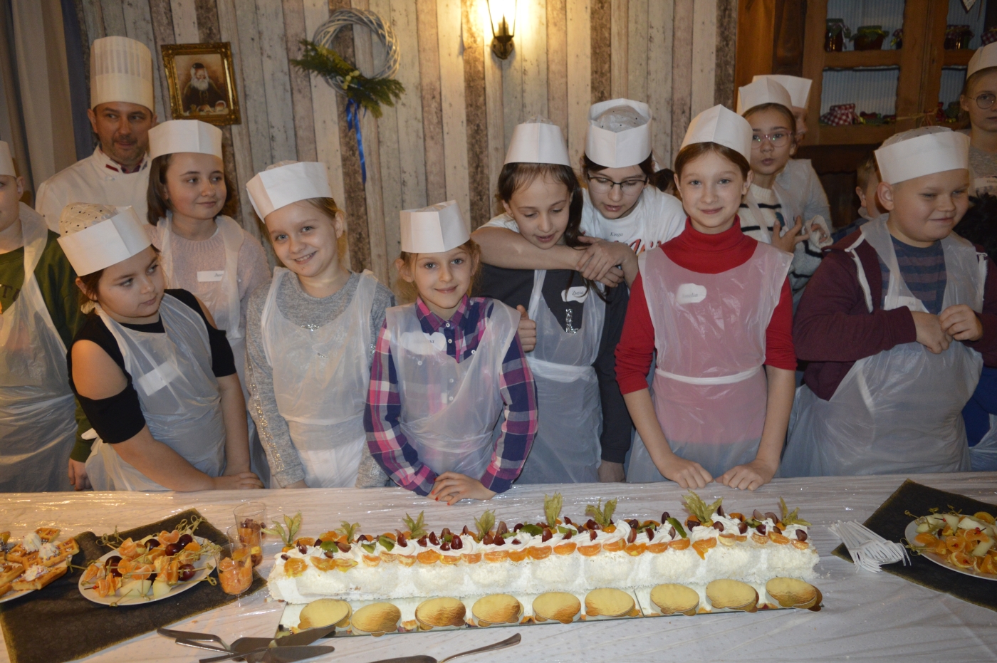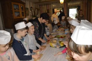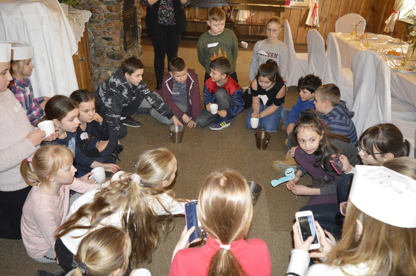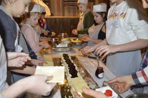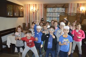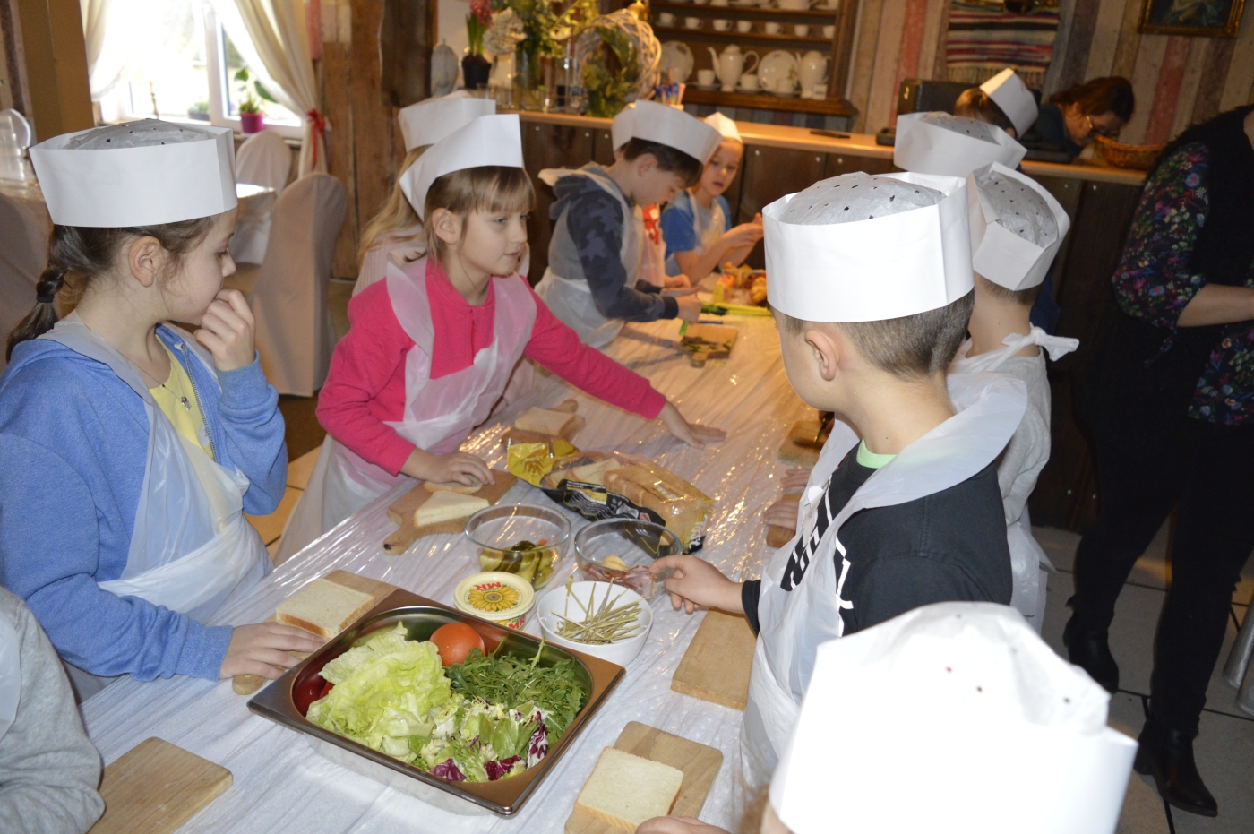Tegoroczne ferie rozpoczęliśmy od smakowitych zajęć w tajemniczej kuchni… wraz z prawdziwym czarodziejem smaków – Panem Marcinem – przygotowaliśmy przepyszne gofry, babeczki, pasty kanapkowe, a nawet tort! Kolejnego dnia wybraliśmy się na wycieczkę do kina, obejrzeliśmy film pt. „Królewna śnieżka i fantastyczna siódemka”, który opowiadał o tym, że wygląd to nie wszystko, a naprawdę pięknym jest ten, kto jest dobry… środę natomiast spędziliśmy w muzeum im. Konstantego Laszczki w Dobrem, gdzie mogliśmy się poczuć jak prawdziwi artyści! Następnie ponownie zawitaliśmy w kinie, obejrzeliśmy film „Gang zwierzaków”, który wprawił wszystkich w doskonały nastrój. Ostatni dzień ferii także był pełen wrażeń: stworzyliśmy wyjątkowe koszulki, zjedliśmy pyszne tosty, a nawet zdążyliśmy zorganizować krótki seans filmowy. Każdego dnia w zajęciach organizowanych przez Gminny Ośrodek Kultury w Dobrem brało udział około czterdziestu uczestników. Z niektórymi widzieliśmy się codziennie, inni brali udział w wybranych zajęciach lub wyjazdach, najważniejsze jednak, że dla każdego znalazło się coś dobrego. Do zobaczenia niebawem!
