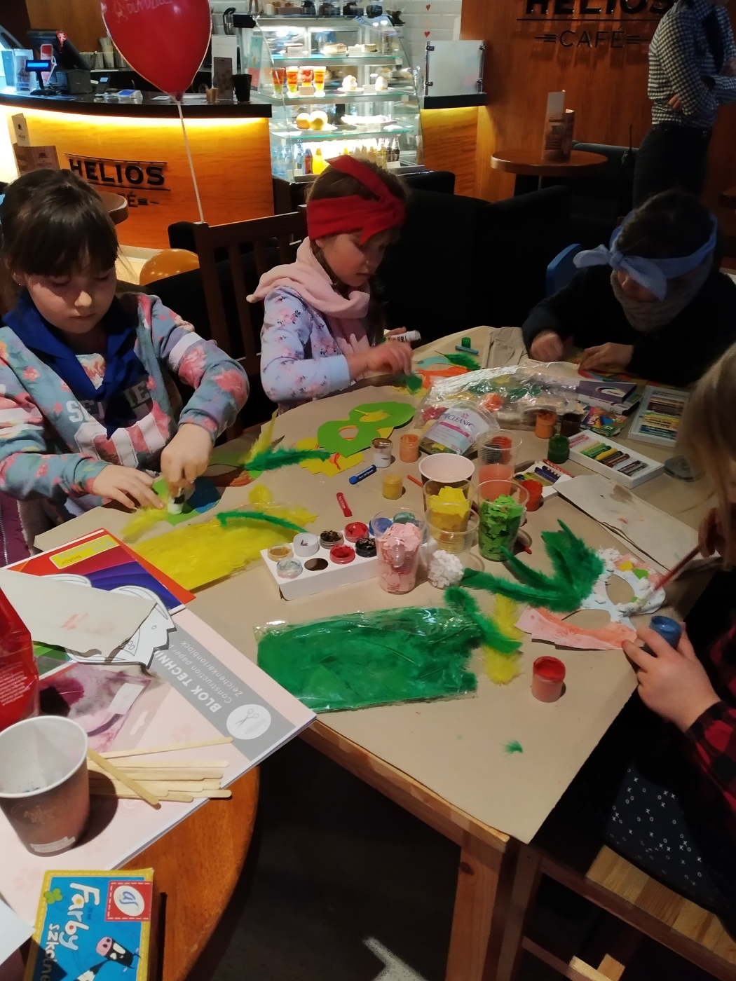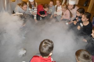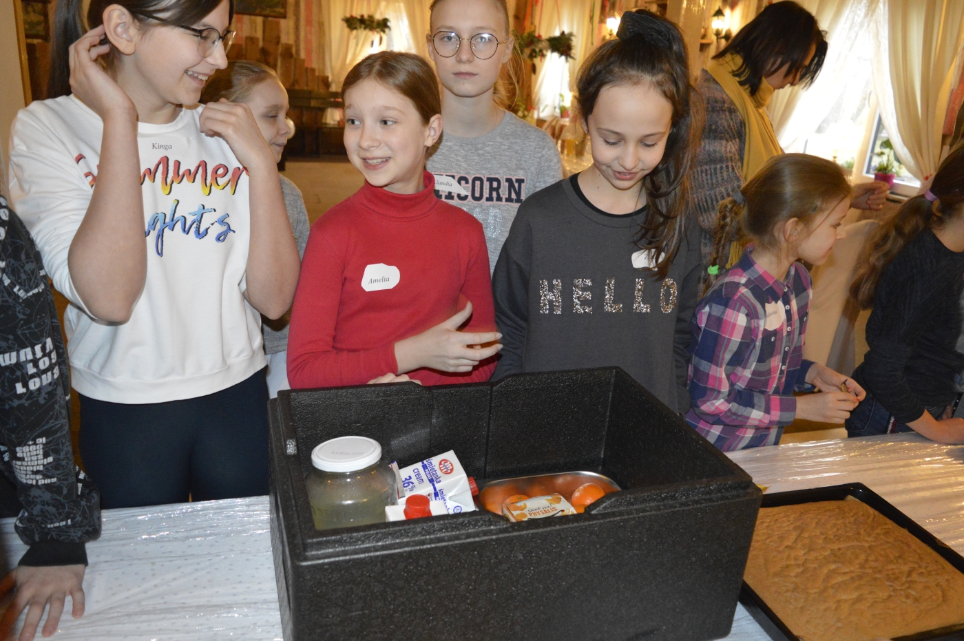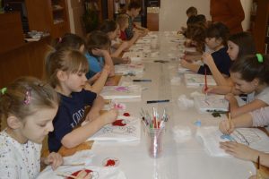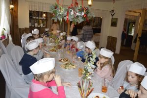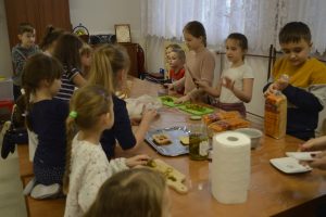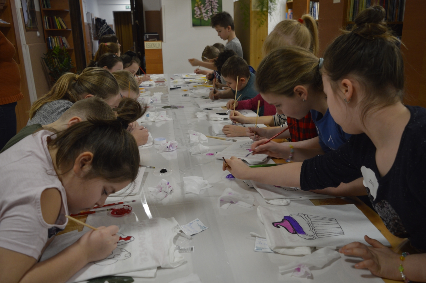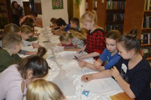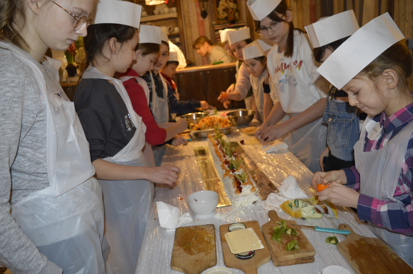 Tegoroczne ferie rozpoczęliśmy od smakowitych zajęć w tajemniczej kuchni… wraz z prawdziwym czarodziejem smaków – Panem Marcinem – przygotowaliśmy przepyszne gofry, babeczki, pasty kanapkowe, a nawet tort! Kolejnego dnia wybraliśmy się na wycieczkę do kina, obejrzeliśmy film pt. „Królewna śnieżka i fantastyczna siódemka”, który opowiadał o tym, że wygląd to nie wszystko, a naprawdę pięknym jest ten, kto jest dobry… środę natomiast spędziliśmy w muzeum im. Konstantego Laszczki w Dobrem, gdzie mogliśmy się poczuć jak prawdziwi artyści! Następnie ponownie zawitaliśmy w kinie, obejrzeliśmy film „Gang zwierzaków”, który wprawił wszystkich w doskonały nastrój. Ostatni dzień ferii także był pełen wrażeń: stworzyliśmy wyjątkowe koszulki, zjedliśmy pyszne tosty, a nawet zdążyliśmy zorganizować krótki seans filmowy. Każdego dnia w zajęciach organizowanych przez Gminny Ośrodek Kultury w Dobrem brało udział około czterdziestu uczestników. Z niektórymi widzieliśmy się codziennie, inni brali udział w wybranych zajęciach lub wyjazdach, najważniejsze jednak, że dla każdego znalazło się coś dobrego. Do zobaczenia niebawem!