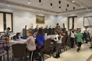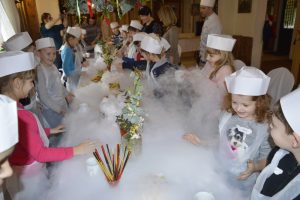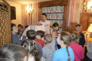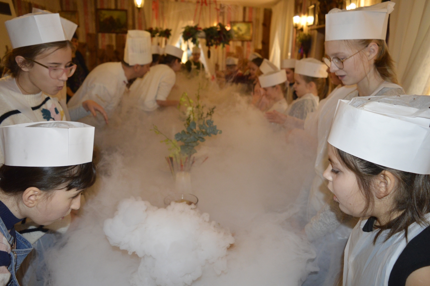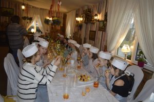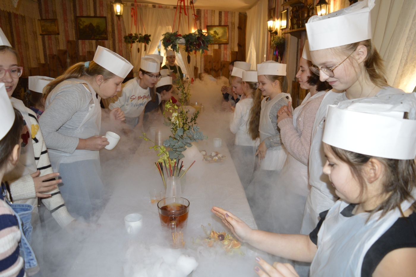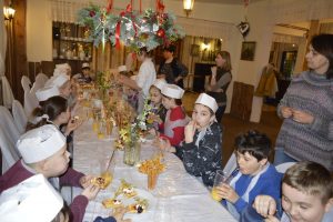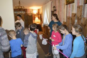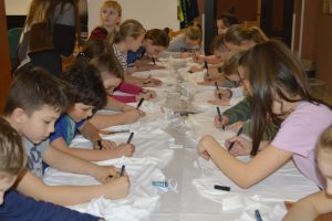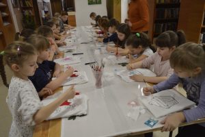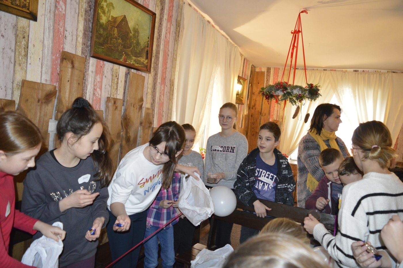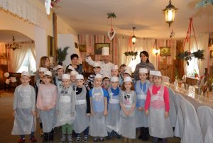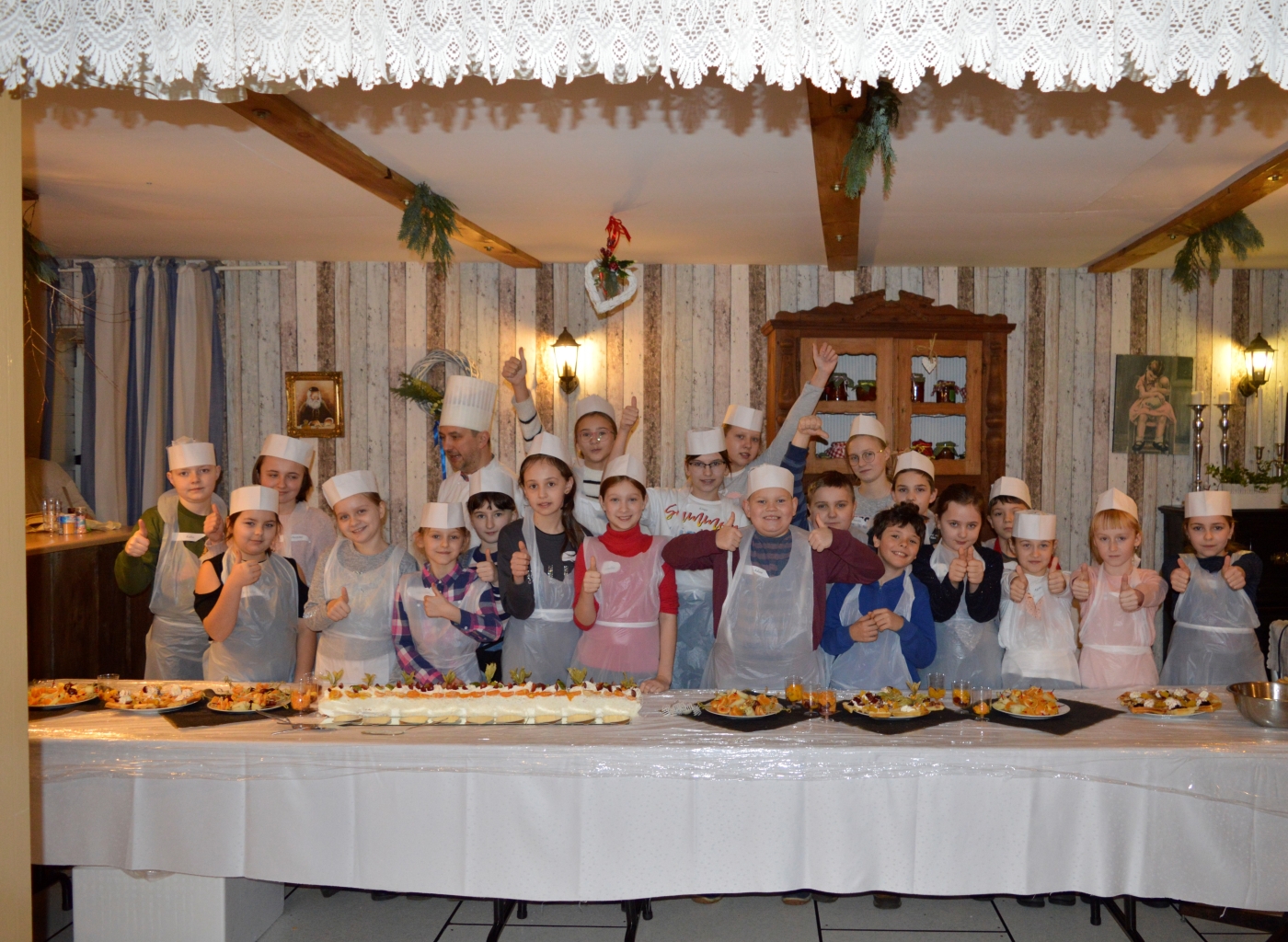 Tegoroczne ferie rozpoczęliśmy od smakowitych zajęć w tajemniczej kuchni… wraz z prawdziwym czarodziejem smaków – Panem Marcinem – przygotowaliśmy przepyszne gofry, babeczki, pasty kanapkowe, a nawet tort! Kolejnego dnia wybraliśmy się na wycieczkę do kina, obejrzeliśmy film pt. „Królewna śnieżka i fantastyczna siódemka”, który opowiadał o tym, że wygląd to nie wszystko, a naprawdę pięknym jest ten, kto jest dobry… środę natomiast spędziliśmy w muzeum im. Konstantego Laszczki w Dobrem, gdzie mogliśmy się poczuć jak prawdziwi artyści! Następnie ponownie zawitaliśmy w kinie, obejrzeliśmy film „Gang zwierzaków”, który wprawił wszystkich w doskonały nastrój. Ostatni dzień ferii także był pełen wrażeń: stworzyliśmy wyjątkowe koszulki, zjedliśmy pyszne tosty, a nawet zdążyliśmy zorganizować krótki seans filmowy. Każdego dnia w zajęciach organizowanych przez Gminny Ośrodek Kultury w Dobrem brało udział około czterdziestu uczestników. Z niektórymi widzieliśmy się codziennie, inni brali udział w wybranych zajęciach lub wyjazdach, najważniejsze jednak, że dla każdego znalazło się coś dobrego. Do zobaczenia niebawem!