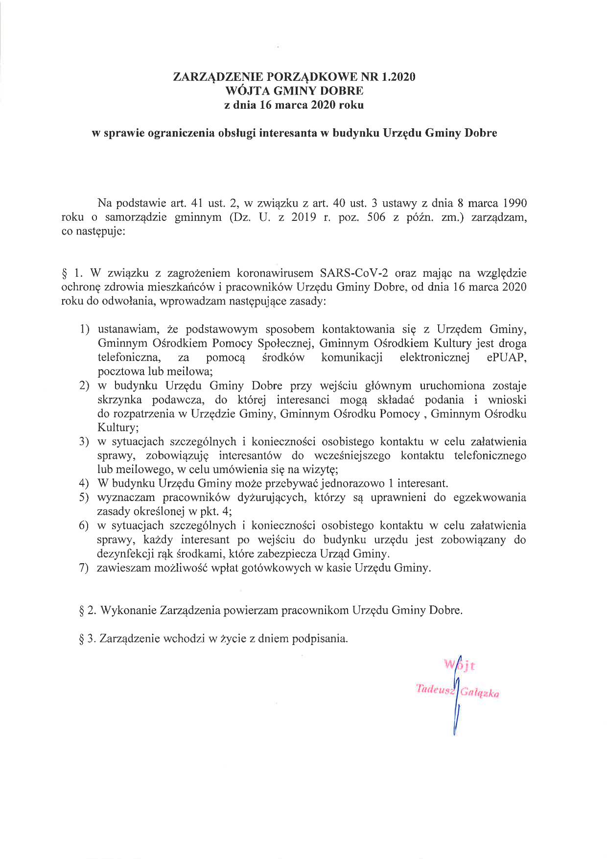 • Zarządzenie porządkowe Wójta Gminy Dobre