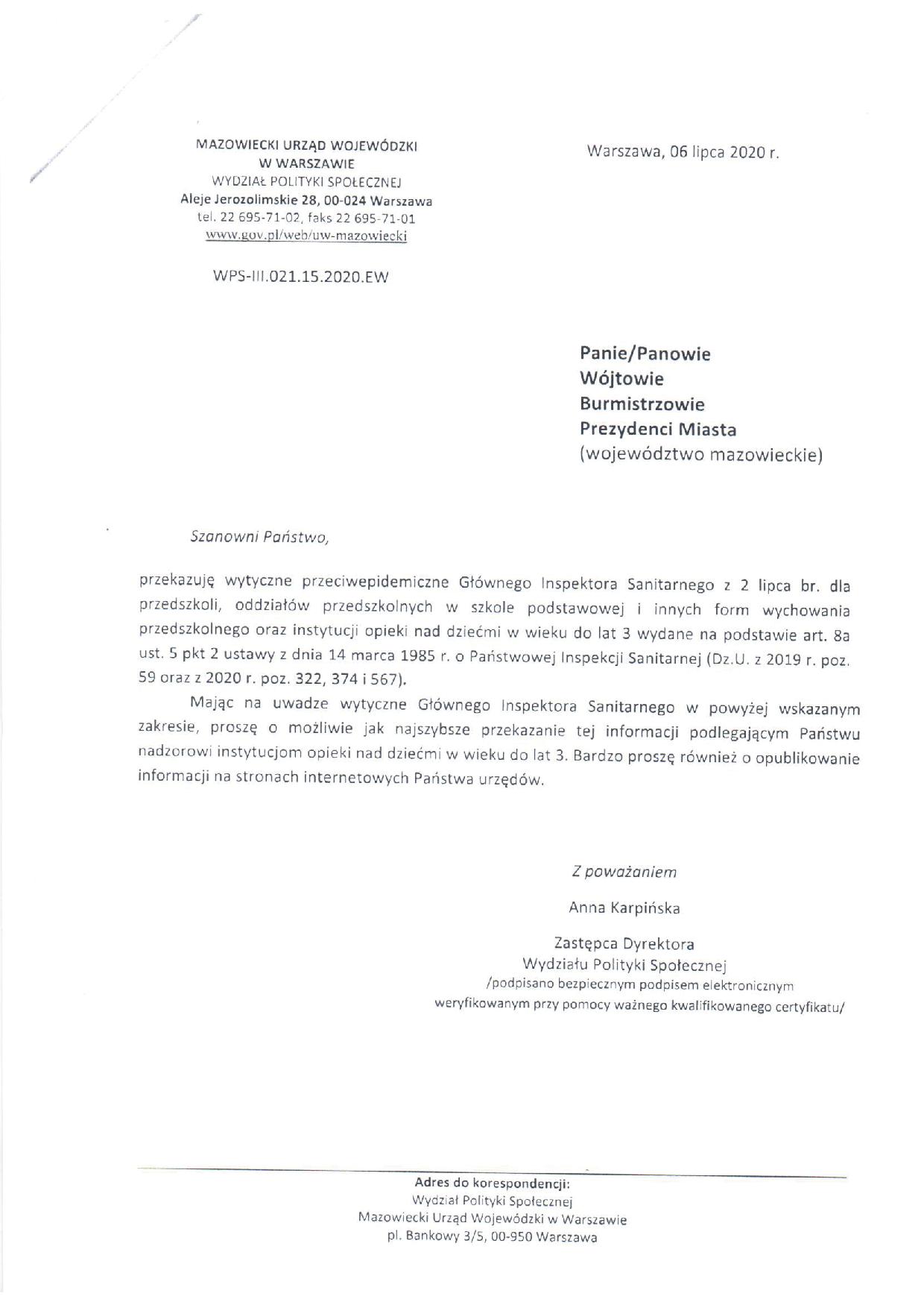 Pismo Głownego Inspektora Sanitarnego