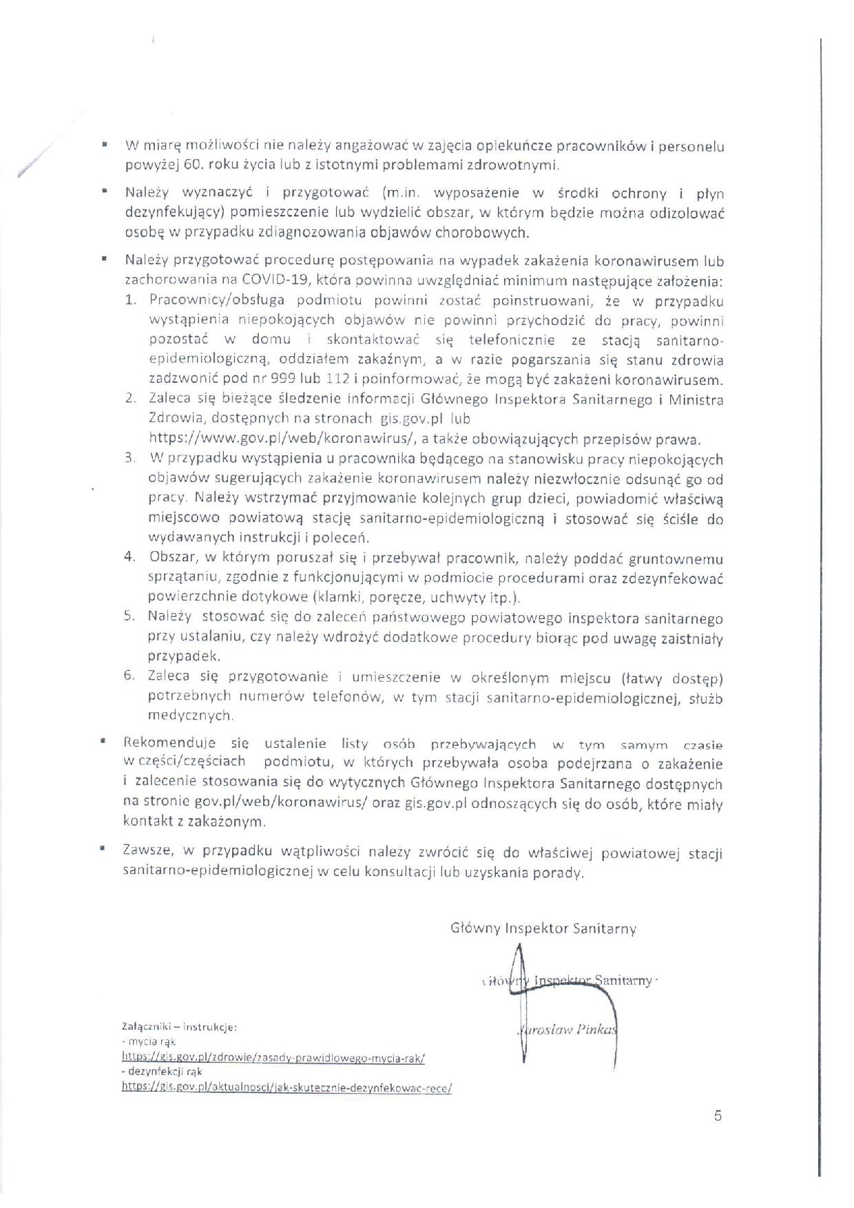 • Pismo Głownego Inspektora Sanitarnego