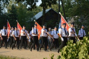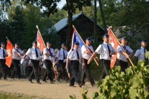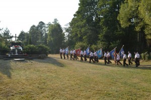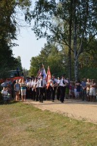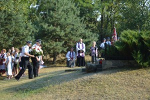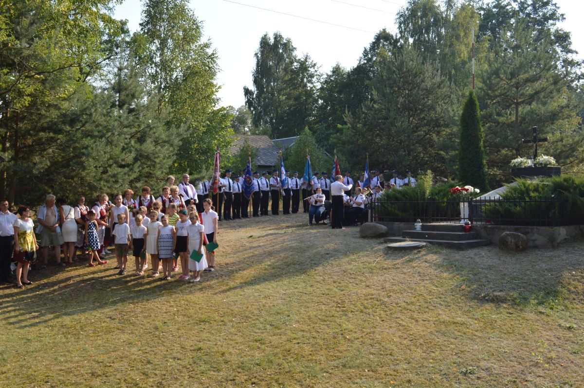 Na początek nastąpiło wprowadzenie sztandarów szkół i jednostek OSP. Później powitano licznie zgromadzonych gości, a Orkiestra Dęta OSP z Dobrego odegrała hymn. Następnie księża z wiśniewskich parafii odmówili modlitwy za poległych w tym miejscu oraz złożono kwiaty pod pomnikiem.