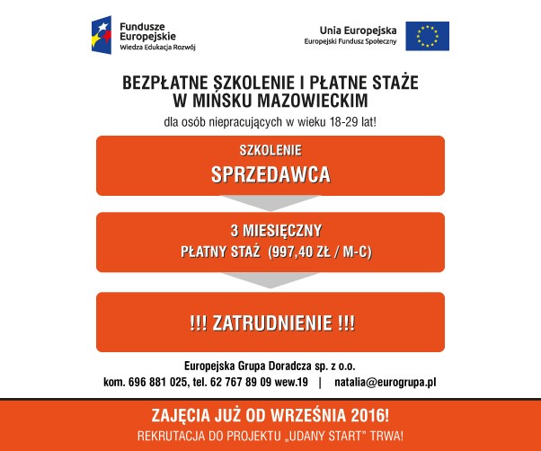 • Bezpłatne szkolenie i płatny staż w Mińsku Mazowieckim